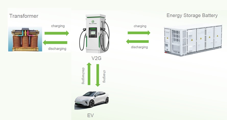 ETS é o exclusivo sistema de carregamento que integra BESS e carregadores bidirecionais com 5% de economia de energia em comparação com topologias que ainda usam PCS. Desenvolvido por Tellus Power e CATL.