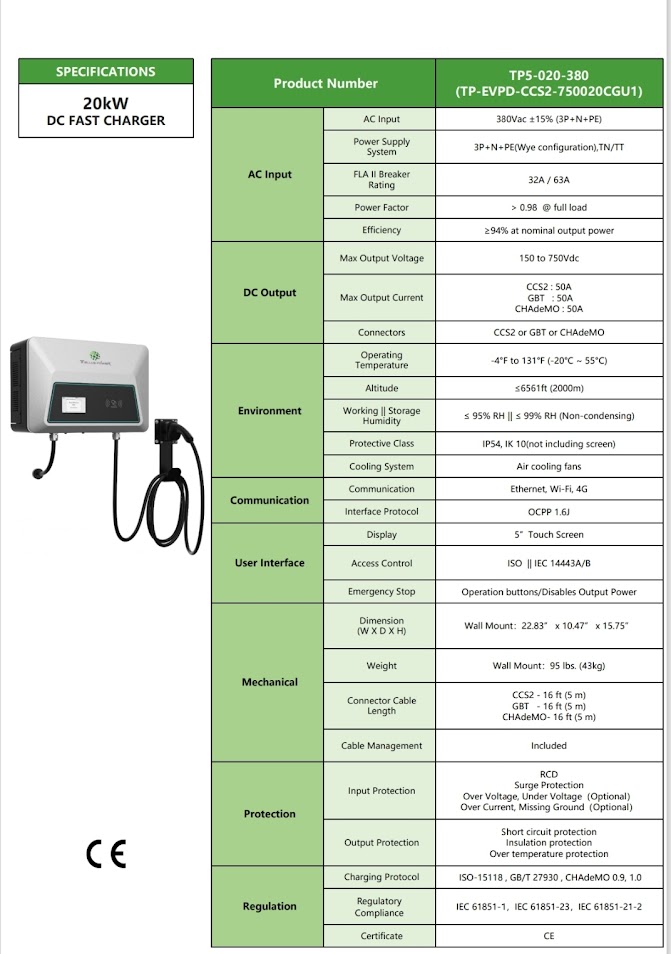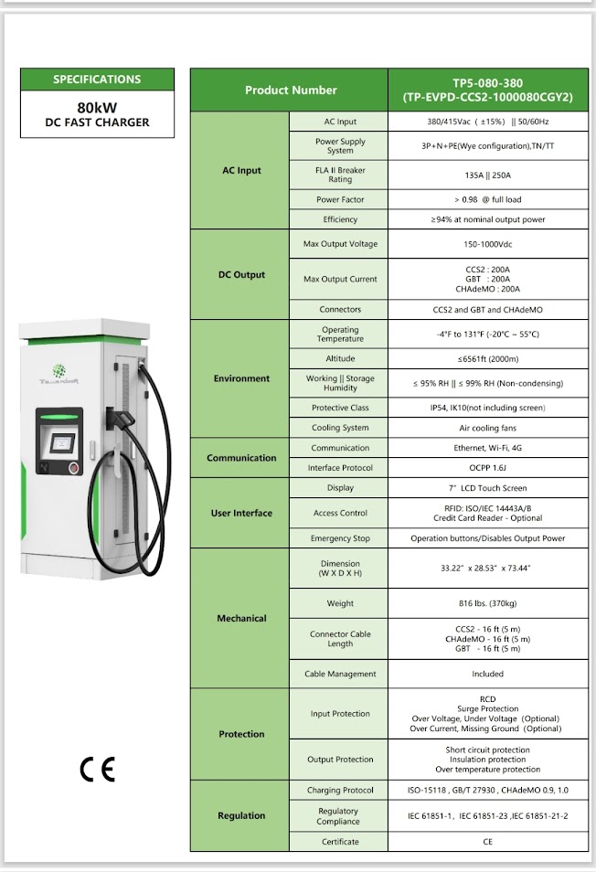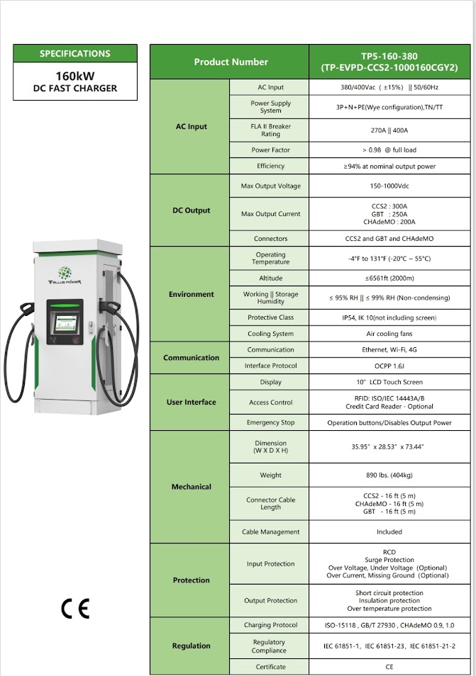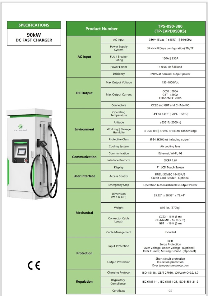 DC Fast Charger - 60kW / 80kW / 90kW / 120kW / 160kW / 180kW